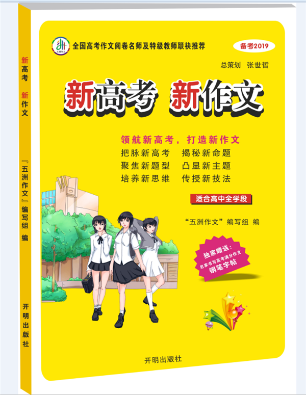据了解,“五洲作文”由知名图书出版人张世哲策划,特聘高考作文命题和研究专家,潜心研究;集聚了“百千万人才工程”、“国培计划”等语文特级名师,结合近几年的高考命题趋势和考生的作文实际,精心编写了《新高考·新作文》系列图书,助力2019年考生勇夺佳绩。