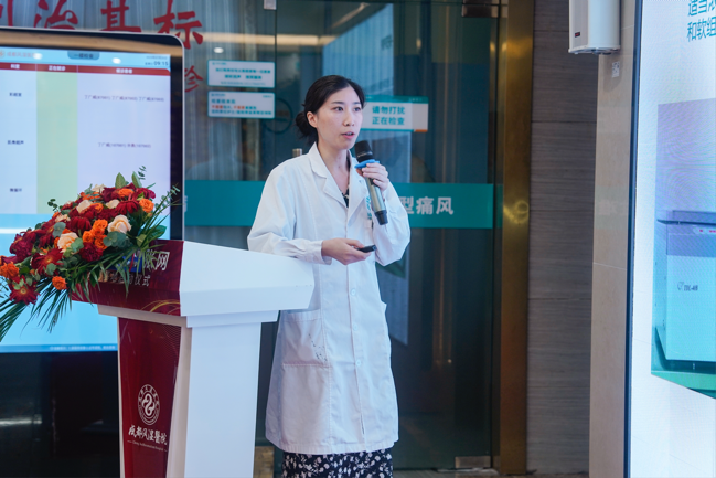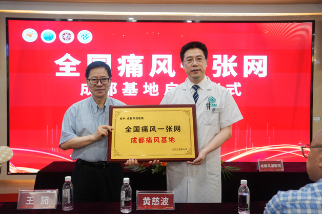 仪式环节,黄慈波、伍玉辉、吕万萍、李小兰等嘉宾共同启动,标志着“全国痛风一张网·成都基地”正式成立。随后,成都风湿医院科研部雷雨主任、痛风专科吕万萍主任分别介绍了医院在痛风诊疗领域的科研成果与临床经验,据不完全统计,成都风湿医院在近10年间,发表痛风、高尿酸血症等相关领域专业论文27篇(其中SCI论文6篇,北大核心期刊5篇,知网普刊16篇),痛风等风湿病科研国家专利20项。授牌环节中,黄慈波教授代表中华医学会内科学分会痛风协作组,为成都风湿医院授予“全国痛风一张网·成都基地”牌匾,希望医院持续完善服务体系,为患者提供优质、高效医疗服务。