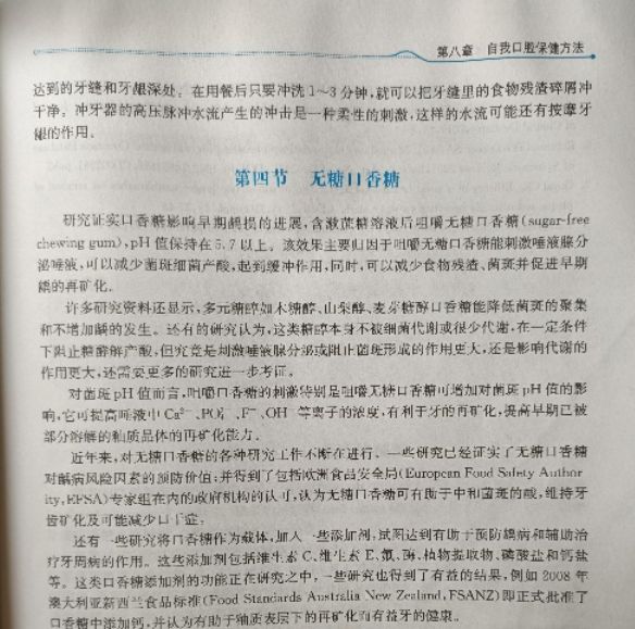 在《龋病预防和管理执行概要白皮书——疾病预防控制现状及关键措施概要》里,也建议将咀嚼无糖口香糖作为龋齿预防的策略之一。在口腔医学教材中,也早明明白白地标识了无糖口香糖的防龋功效。